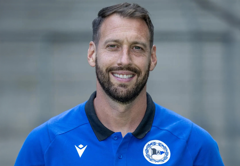 Mitch Kniat, Trainer des DSC Arminia Bielefeld, gibt Autogramme auf unserem Stand.