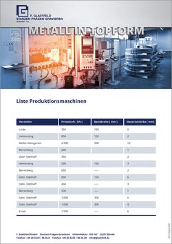 Hier steht Ihnen Informationsmaterial, wie das Zertifikat, die AGB und die Maschinenliste zur Verfügung. Sollten Sie Fragen haben oder nähere Informationen benötigen, kontaktieren Sie uns unter info[at]gladtfeld.de.